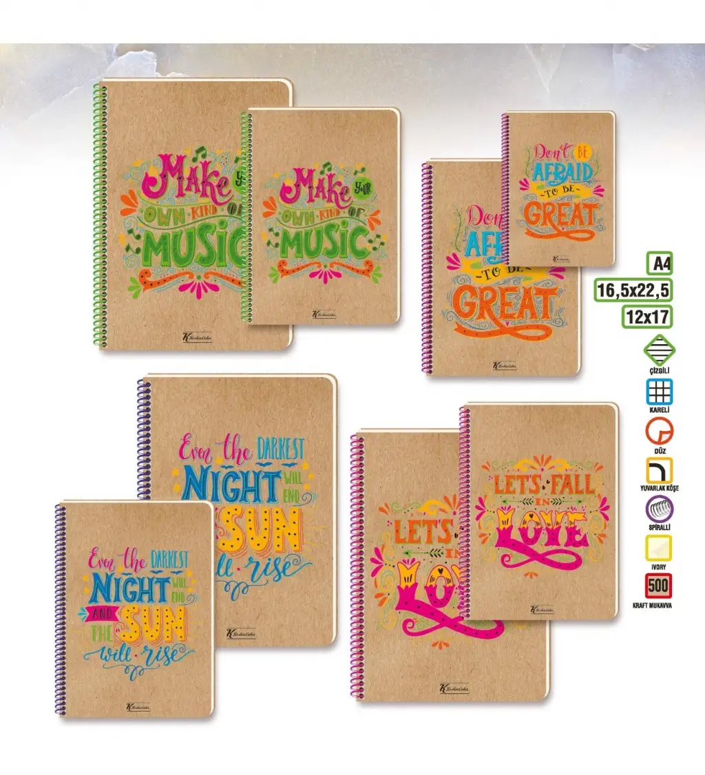 GIPTA A4 SPİRALLİ ÇİZGİLİ DEFTER SERT KPK 140YP
