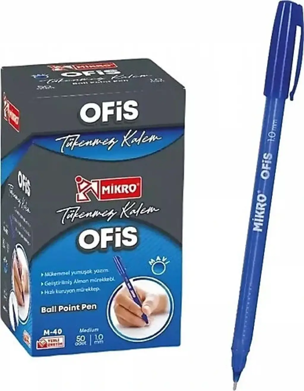 Mikro Tükenmez Kalem Ofis Tip Mavi M-40(pk-50 Li)
